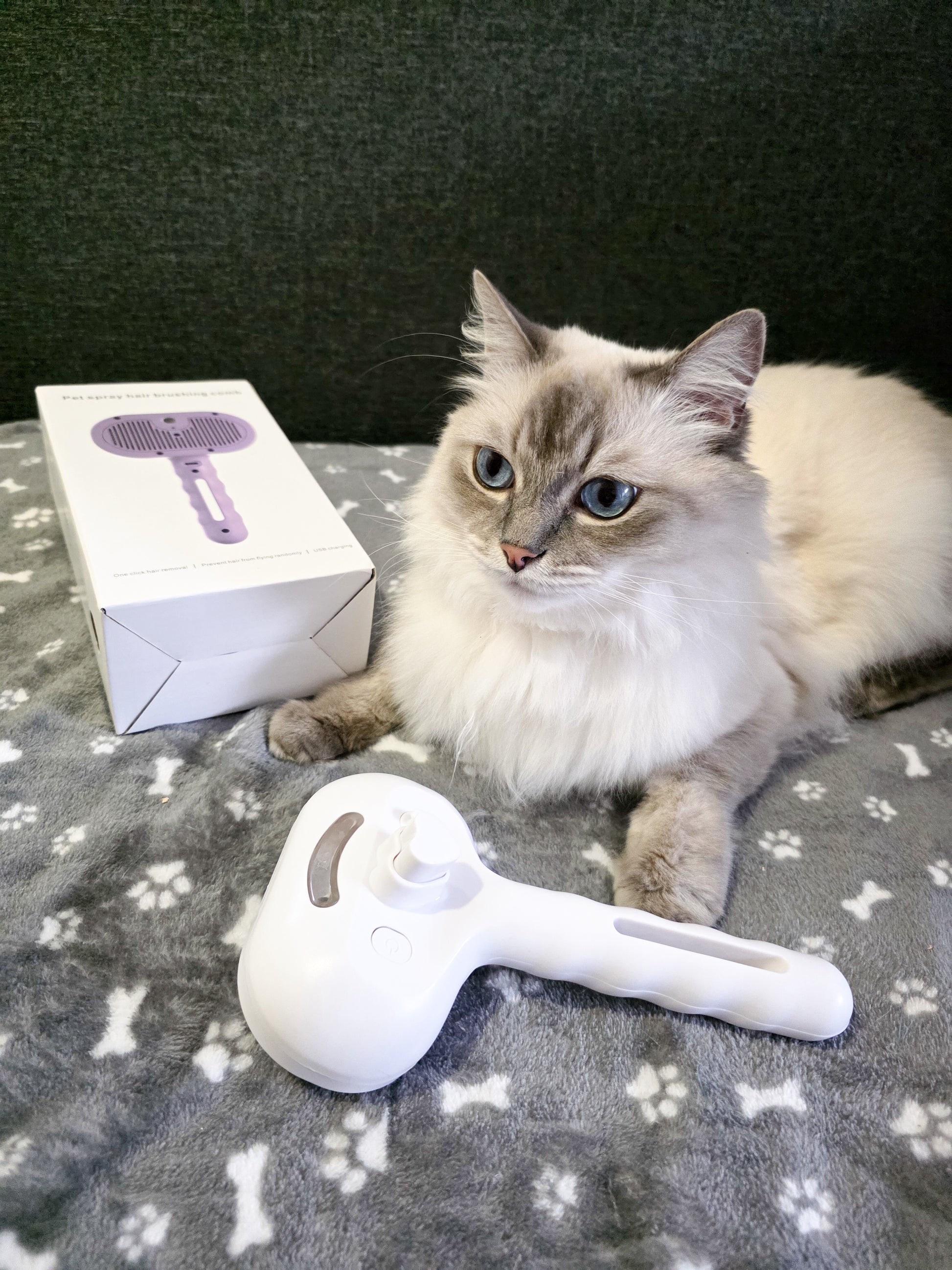 Besonders praktisch finde ich die kleine Flasche, die man mit Wasser befüllt. Wenn man sie benutzt, kommt leichter Dampf raus, und dadurch lässt sich das Fell noch besser pflegen.