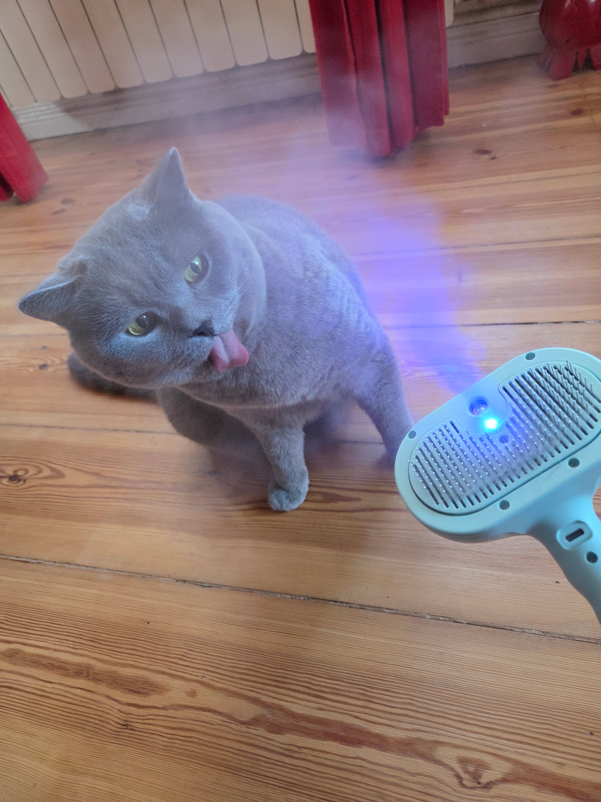 Das UV-Licht gibt mir zusätzlich ein gutes Gefühl, weil es für extra Hygiene sorgt. Die Bürste liegt sehr angenehm in der Hand, rutscht nicht und ist selbst für empfindliche Tiere sanft genug.